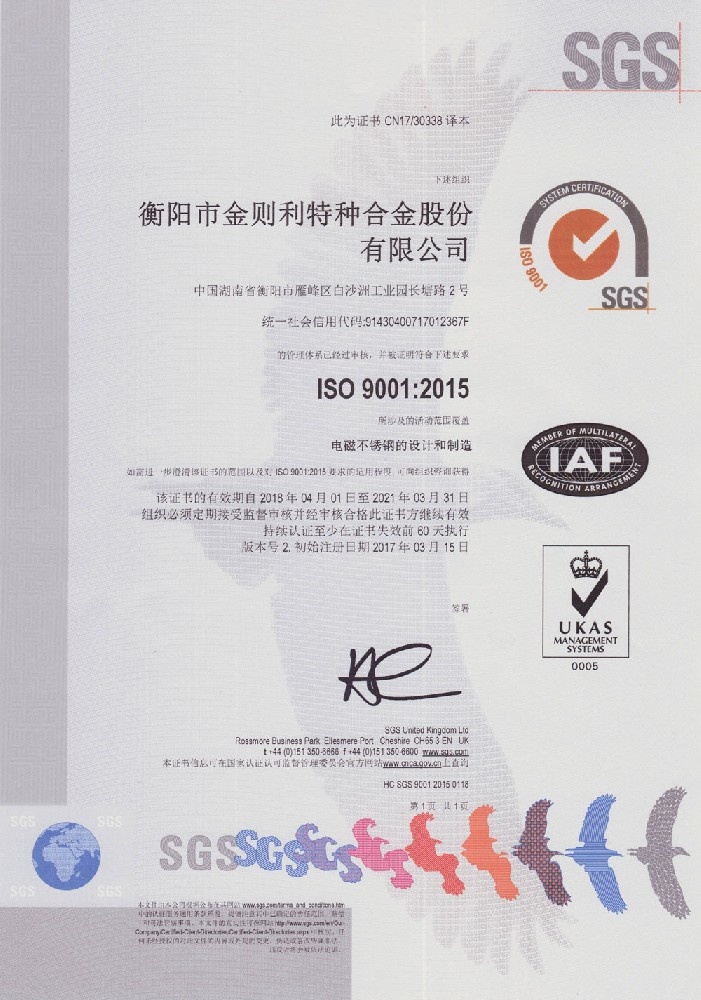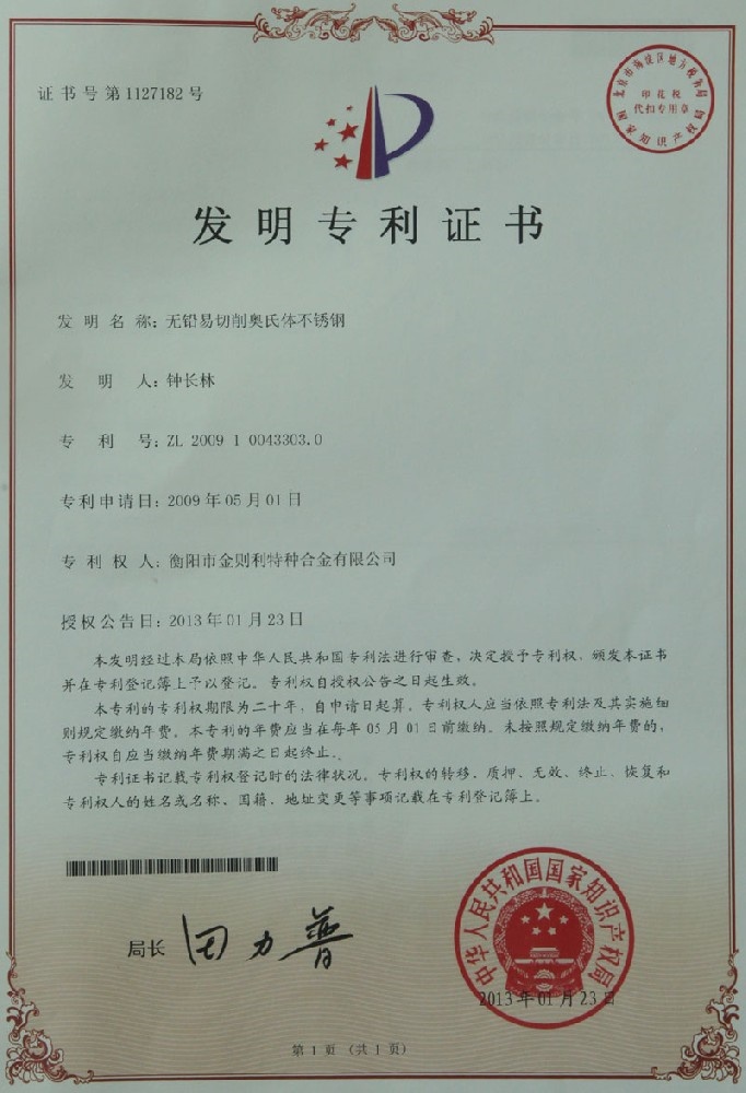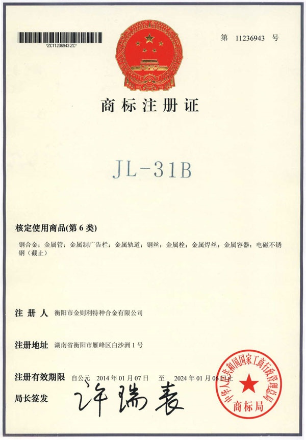 衡陽市金則利特種合金股份有限公司成立于一九九九年十二月,注冊(cè)資本人民幣兩千兩百萬元。注冊(cè)地址:衡陽市雁峰區(qū)白沙洲工業(yè)園長(zhǎng)塘路2號(hào)。公司主營(yíng)耐蝕軟磁合金,為湖南省高新技術(shù)企業(yè)。公司自成立以來,即致力于耐蝕軟磁合金的研發(fā)。 研制出的JL-31(00Cr13si2Pb)、JL-31B(00Cr13si2)、JL-31BS(00Cr13Si2S)、JL-37B(0Cr17Si2)、JL-37(0Cr17···